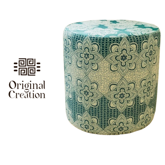 Tabouret Pouf Assise de Luxe rembourré de haute gamme en wax pied en bois noble de style vintage en de la Collection Retro Art N°187 د.ت380.000
